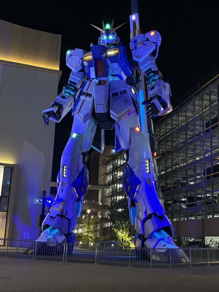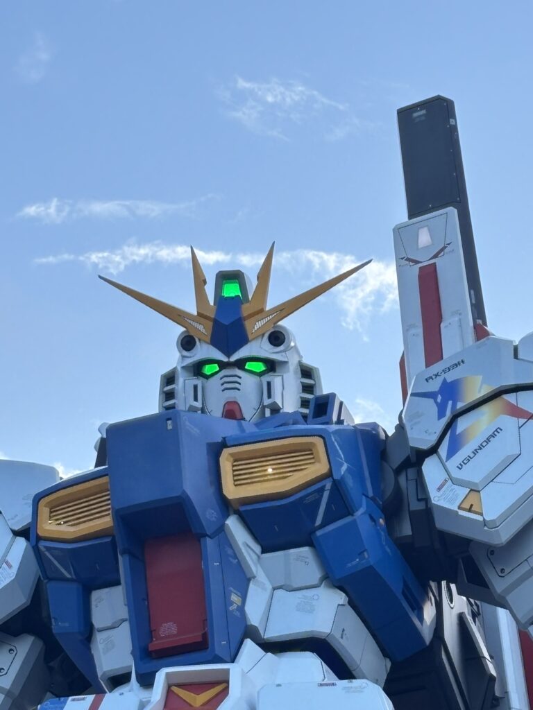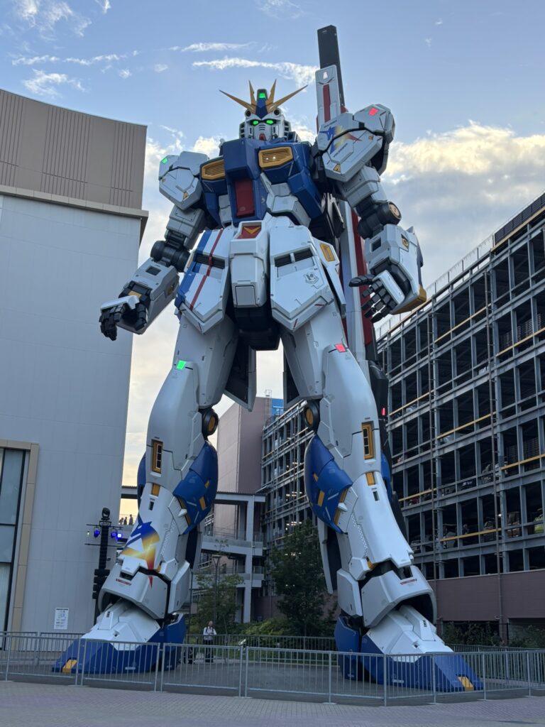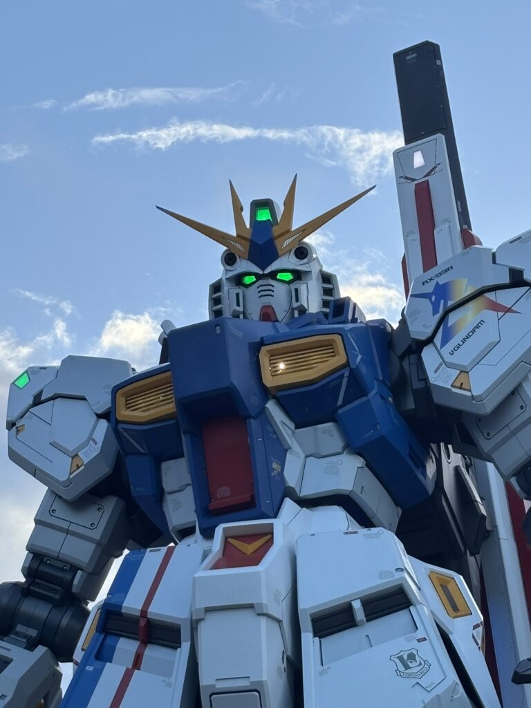 エンタメ施設。到着や移動の合間に「サラッと立ち寄りたい」ならこちらがおすすめ。実物大νガンダム立像がある。今回行ったのは、こちら。立像を見たり、映像モニター眺めたり、限定グッズもある。