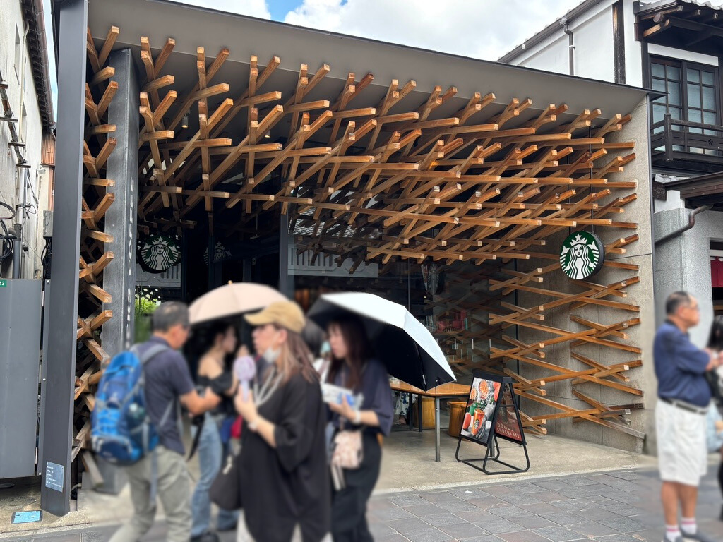 ▼参道にあった隈研吾デザインのシャレオツスタバ。